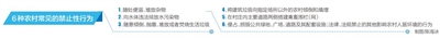 《规定(草案)》列举了6种农村常见的禁止性行为,包括随处便溺、堆放杂物;向水体违法排放水污染物;随意倾倒、抛撒、堆放或者焚烧生活垃圾;将建筑垃圾向指定场所以外的农村倾倒和填埋;在村庄内主要道路两侧搭建禽畜围栏(网);侵占、损毁公共绿地、广场、道路及其配套设施;法律、法规禁止的其他影响农村人居环境的行为。