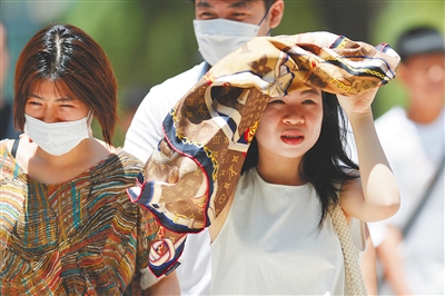 7月7日,行人在泰国曼谷街头用衣物遮阳。新华社发