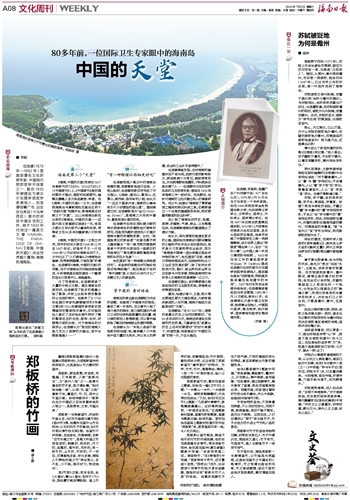 《海南,中国的天堂》发表在1937年春季刊的CHINA QUARTERLY(《中国季刊》)上。《中国季刊》是民国时期关于国内、国际的权威期刊,编辑及撰稿人多为知名教授、学者。在《海南,中国的天堂》一文中,伍连德把海南岛与夏威夷和巴厘岛这两个“旅游天堂”相提并论,称海南是当时第三个“天堂”。2022年海南出版社出版的《海南岛,中国的天堂——近现代西文琼崖游记选译》一书,将其大部分文字内容予以翻译和收录,使得该文在80多年后重新被人们所阅读。