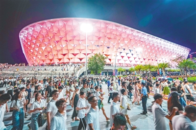 本报三亚7月9日电 (记者徐慧玲)7月9日晚,三亚抱坡国际体育中心白鹭体育场(以下简称白鹭体育场)迎来首秀, 2023三亚之夜群星演唱会火热开唱。据悉,白鹭体育场的启用,弥补了三亚缺乏演唱会场馆的空白,也为三亚探索演唱会经济产业链奠定基础。当天18时许,海南日报记者在白鹭体育场外看到,距离演唱会开始还有2小时,观众排起长队等候入场,不少观众专程从外地前来。“很多人会为了看一场演唱会而奔赴一座城市,如今,我们在家门口也能实现了。”三亚市民张位程说,希望今后三亚举办更多文化艺术活动,让城市更有活力。