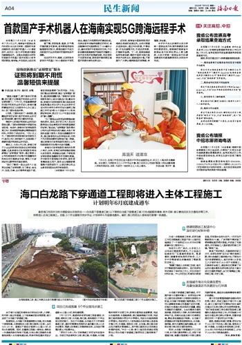 备受海口市民关注的长堤路综合改造项目——白龙路下穿通道工程(以下简称白龙路下穿通道工程)已完成前期的清表、树木迁移、部分管线迁改及交通导改等工作,即将进入主体工程施工。目前,5个作业面每天同步作业,计划明年6月底建成通车。届时,海口市民出入海甸岛可新增一条道路。A