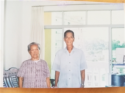 陈爱雄(左)眺望四更沙灯塔。 本版图片均由受访者提供