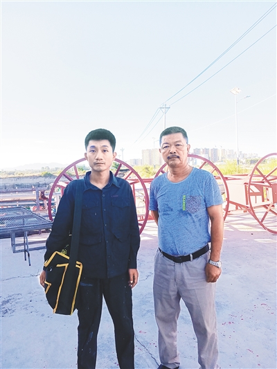 这个场景,陈爱雄太熟悉了。早在几十年前,他和父亲就是这么配合的,只不过那时更换的是蓄电池。在塔顶放绳子的是父亲,在塔底系绳子的是他自己。
