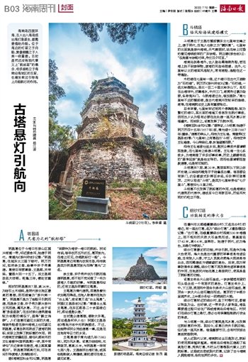 文\本刊特约撰稿 杨江波海南岛四面环海,古人出入海岛或出海打鱼谋生,都需要借助舟船。位于海边的灯塔之于舟船,就像眼睛之于人类一样重要。古时虽然还没有现代意义上“航标塔”的概念,但多座屹立于海南沿海地区的古塔,也曾发挥过引导海上舟船航行的作用。
