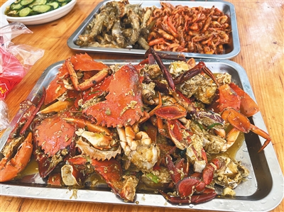 茄新村的水产品十分丰富。如果你提前预订,村民可以准备一桌丰盛的菜肴。当地人从河滩上捉鱼、虾、蟹,然后用最简单的方法烹饪,让游客品尝大自然的味道。此外,村民们还种了水稻、圣女果、槟榔。夏秋季节,村里的高标准农田与连绵群山组成的自然风光,如诗如画。