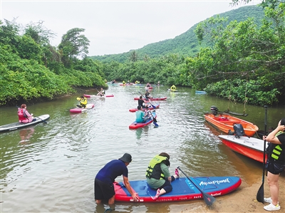 如何做好“水”这篇旅游发展文章,是近年来茄新村“两委”一直在思考探索的事情。经过一番筹备,2023年3月,该村推出了“秘境椰林桨板”“海河夜捕赶海”“热带雨林溯溪徒步”等旅游体验项目,吸引市民游客进村休闲游玩。