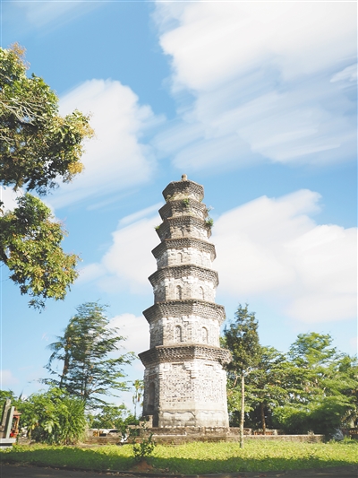 5月28日下午,琼海市塔洋镇聚奎塔的上空,一片片好似画笔刷成的白云。 蒋大武 摄