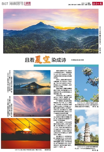 文\海南日报记者 陈耿海南岛夏季的天空,在很多人的想象或印象中,一般都是蓝天、白云、烈日,或有乌云、风雨,也是稍纵即逝,很快就会变回碧空如洗。