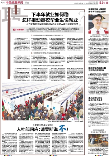 人社部门将始终把促进青年特别是高校毕业生就业摆在突出位置,竭尽全力支持青年到各行各业施展才华、建功立业。