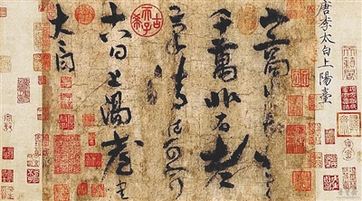 《上阳台帖》,经过千余年传奇式流传,辗转而入故宫博物院,成为国家一级文物中的“国宝”,被鉴定为“一级甲”。此件既是李白传世书法的唯一,我们不妨展开符合逻辑的想象: