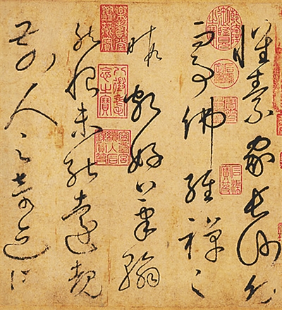 张旭曾自言见公主担夫争路而得笔法之意,见公孙大娘舞剑器而得其神。韩愈说张旭观于天地万物寄寓于书法,变动犹如鬼神,不可端倪。张旭性情豁达狂放,喜欢饮酒,醉后更加不拘小节,常常“露顶据胡床,长叫三五声”“脱帽露顶王公前,挥毫落纸如云烟”,在癫狂状态中完成创作,天下呼为张颠。《唐国史补》:“旭饮酒辄草书,挥笔而大叫,以头揾水墨中而书之,天下呼为张颠。醒后自视,以为神异,不可复得。”艺与道合,再加上其个性的张扬,造就了张旭狂草难以被逾越的高度,也使张旭的草书成为大唐气象的一大代表。张旭去世后,杜甫悲哀地叹道:“斯人已云亡,草圣秘难得。”明王世贞谓张旭的草书“出鬼入神,惝恍不可测”。《古诗四帖》《肚痛帖》等成为狂草的经典杰作。
