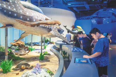 近日,在中国(海南)南海博物馆里,中小学生参观游览。