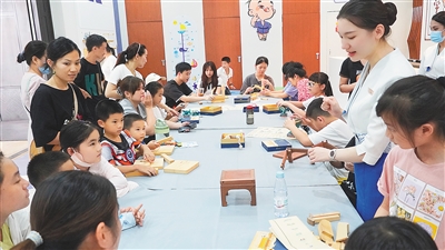 近日,中小学生和家长在海南省博物馆体验榫卯拼接活动。 海南省博物馆供图