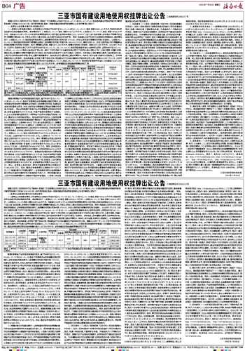 六、其他事项:(一)本次竞买活动进行线上报价,不接受电话、邮寄、电子、口头报价。(二)成交价款含耕地占用税,其他相关税费由竞得人按规定缴纳。(三)该宗地以现状土地条件挂牌出让。出让公告一经发布不得随意更改,出让公告或须知内容确需调整修改的,应终止原出让公告后重新发布出让公告。(四)交易业务咨询。联系电话:88364406、65303602。联系人:赵先生(13807527707)。查询网址: http://www.landchina.com;http://zw.hainan.gov.cn/ggzy/;http://lr.hainan.gov.cn;http://lr.hainan.gov.cn:9002/。(五)CA证书办理咨询。办理机构:海南省数字认证中心。办理地址:海口市国贸大厦C座B栋一楼海南省数字证书认证中心、三亚市政务服务中心17、18号窗口。咨询电话:0898-66668096。证书驱动下载网址:www.hndca.com。