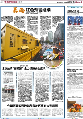 据了解,连日来,水利部会同北京、天津、河北、山西、山东、河南等省市和海河水利委员会,重点安排部署海河流域暴雨洪水防御工作,每天召开会商滚动分析研判台风暴雨洪水形势,细化实化防范应对措施,每日“一省一单”靶向预警,全力应对暴雨洪水。