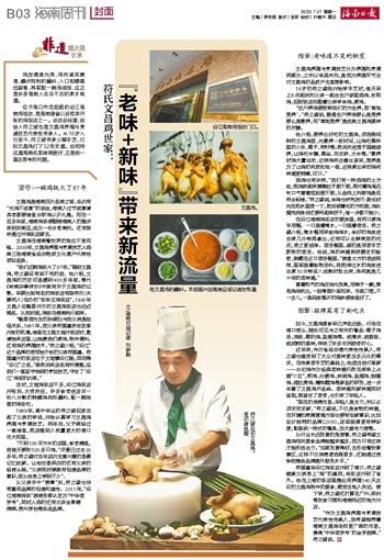 从父亲手中“接棒”后,符之望也非常重视品牌的创建和宣传。2011年,“沿江海南鸡饭”被商务部认定为“中华老字号”,同时入选的还有北京全聚德烤鸭、贵州茅台等知名品牌。