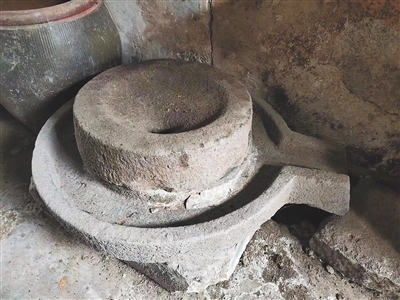 存放在罗家祖屋中的用于制粉的石臼和石磨。