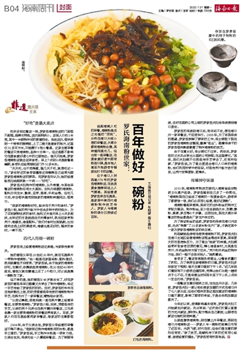 从挑担售卖海南粉,到在镇上开早餐店,再到在海口开海南粉店……罗家人与一碗粉的故事已书写了近百年。光阴飞逝,时代在变,但他们做生意的原则没有变。“除了技艺,祖辈流传下来的还有用心经营、诚信经营的理念。”罗家杏若有所思地说。