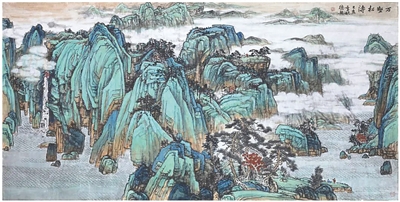 作为一种古老且经历过相当阶段沉寂的绘画样式,青绿山水如何切入当代,众多画家已从不同方向、不同载体做了许多富有特色的学术探索。乔德龙的山水画作,以山川魂魄的力度美感,赋予青绿山水一种古韵隽美,画中的雄浑山势和波澜水态,映射出其内在风骨和精神品位。同时,他用传统线描的多重勾勒,去表达内心厚实雅致的情感内涵;以青绿赋色让人心田浸润,绘云雾之变而通灵动之气,以万象之变展千年山水的法度之美。
