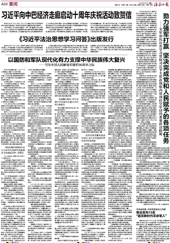 习近平强调,展望未来,中方愿同巴方一道,坚持高标准、可持续、惠民生目标,不断完善布局、拓展深化合作,将走廊进一步打造成为高质量共建“一带一路”的示范性工程。不论国际风云如何变幻,中方将始终同巴方坚定站在一起,携手同心、砥砺前行,弘扬好“铁杆”友谊,统筹发展与安全,开展更高水平、更广范围、更深层次的合作,推动中巴全天候战略合作伙伴关系迈上新的台阶,为两国乃至地区的和平繁荣作出更大贡献。