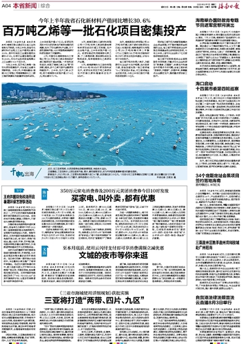 今年上半年,百万吨乙烯等一批石化项目密集投产,对全省工业增长贡献明显。今年2月,中海油富岛(海南)化工有限公司海南精细化工二期工程丙烯腈系列装置项目投料试车,上半年实现产值4.7亿元;该项目利用东方石化的丙烯生产高附加值的丙烯腈,拉长了石化新材料产业链,为下游发展碳纤维、ABS树脂等高端新材料项目提供了关键原料。
