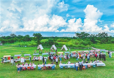 近日,2023海口市龙华区第二届“五丰香芋”节在龙泉镇龙浩·一亩时光农庄举办。活动围绕开展“芋王”和“种植能手”评比、“芋王”拍卖、特色品牌集市等环节,进一步加强龙泉镇特色农产品品牌建设,推动特色农业产业高质量发展,助力乡村全面振兴。图/本报记者 王程龙
