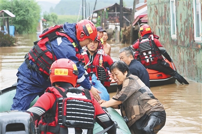 日前,黑龙江省尚志市发生强降雨,导致蚂蚁河尚志市段水位上涨,城镇部分地区出现内涝。黑龙江省森林消防总队哈尔滨市森林消防支队担负尚志市主城区、一面坡镇、亚布力林业局等地加固堤坝和转移受困群众任务,全力守护人民群众生命财产安全。新华社发