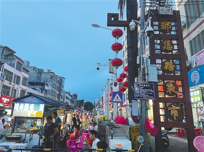 幸福街的北面有一条那恁路。晚上7点多,那恁路夜市开始热闹起来,几十个移动摊位整齐地排列在道路两旁,摊主们热情招呼顾客品尝。如果你第一次来儋州,儋州米烂必须尝一尝。