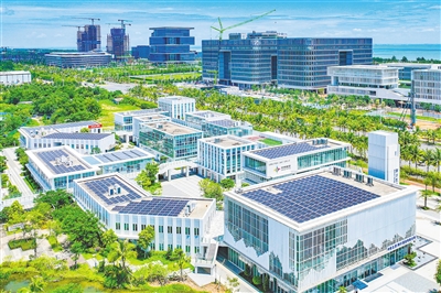 据了解,为打造“低碳园区”,海口江东新区企业港在其楼顶安装太阳能光伏板,该项目总面积2400平方米,装机容量为522.65千瓦,日均发电约2105度,可满足企业港白天时间段的办公用电、商业用电、配套设施设备用电需求。本报记者 王程龙 摄