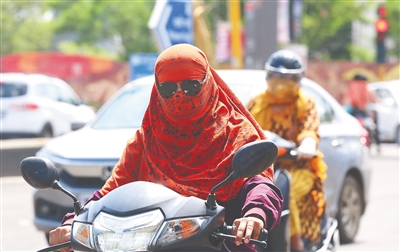 在印度博帕尔,人们将头部包裹以遮阳防晒。