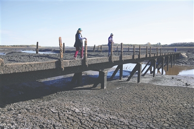 在高温天气下日渐干涸的乌拉圭帕索塞韦里诺水库。