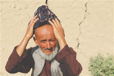 在阿富汗朱兹詹省,一名男子用湿头巾降温。 (本栏照片均由新华社发)