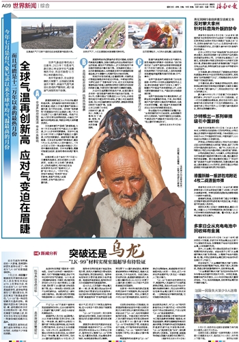 世界气象组织等机构8日宣布,2023年7月是有气象记录以来全球平均气温最高的月份,而且可能是12万年以来的最热月份。有关专家表示,在全球变暖的大背景下,出现破纪录高温并不意外,极端天气是气候变化造成的严酷现实,减少温室气体排放刻不容缓。