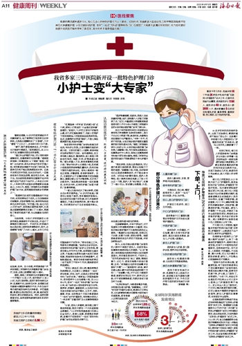 ■ 本报记者 曾毓慧 通讯员 李敏香 吴艳病患的需求越来越多元化,贴心又走心的特色护理尤为令人期待。近段时间,我省数家大型综合性三级甲等医院陆续开设淋巴水肿康复护理、认知功能训练护理、老年“一站式”专科护理等特色门诊,在颇受广大病患及家属好评的同时,也为如何更好地提升优质医疗服务带来了新启发,其中的样本值得借鉴与推广。