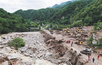 西安市长安区滦镇街道喂子坪村鸡窝子组山洪泥石流灾害现场。 新华社发