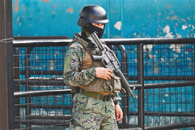 一名士兵在厄瓜多尔瓜亚基尔警戒。 (本栏照片均由新华社发)