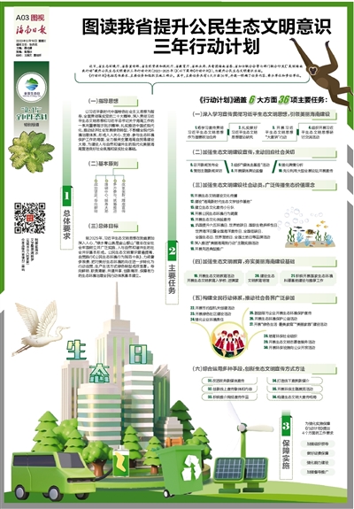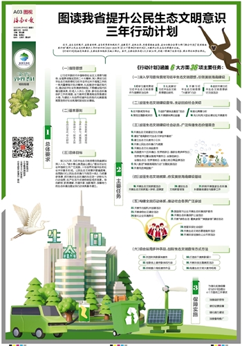 近日,省生态环境厅、省委宣传部、省自然资源和规划厅、省教育厅、省林业局、共青团海南省委、省妇女联合会等七部门联合印发《“美丽海南我行动”提升公民生态文明意识三年行动计划(2023-2025年)》(以下简称《行动计划》),为提升公民生态文明意识出招。《行动计划》包括总体要求、主要任务和组织实施三部分。其中,主要任务共有6大方面36项,并逐一明确了任务内容、牵头单位和责任单位。
