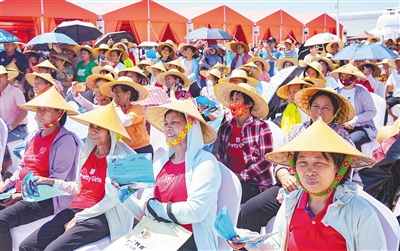 ③ 8月16日,临高县新盈镇新盈中心渔港,“渔婆”们在观看开渔仪式。本报记者 陈元才 摄