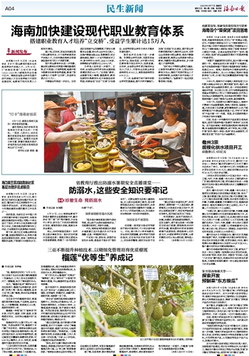据介绍,近年来,我省加快建设现代职业教育体系,大力培养高素质技术技能人才,为加快推进海南自贸港建设提供有力的人才资源支撑。