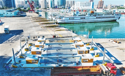 据了解,秀英港区对外开放口岸升级改造和“二线口岸”查验设施设备改造项目一共有18个点位,既有新建区域,也有在原来的基础上进行改造升级,涉及客滚、集装箱、散杂货三大业务板块。目前,该项目中的客车和集装箱查验用房主体全部封顶。