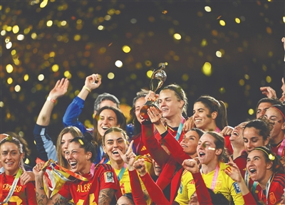 在首次扩军至32支球队的本届世界杯上捧杯,使得西班牙队成为继美国、挪威、德国和日本队之后,第五支夺得女足世界杯冠军的球队。此前,只有德国足球完成过在男足世界杯和女足世界杯上都夺冠的佳绩。今天,西班牙人加入了这一行列。