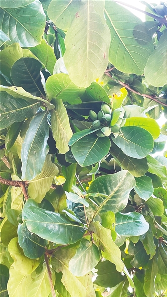 乡村里,榄仁树多种植在菜地、稻田两侧,叶子硕大墨绿,层层叠叠,默默无闻地给人们撑起一把把巨伞,形成“绿色隧道”遮挡住烈日的照射。
