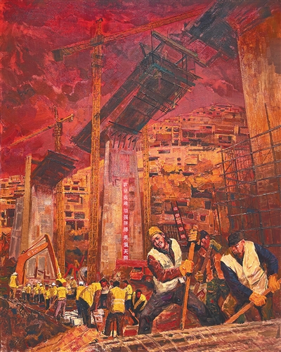 梁怀友油画《时代记忆——共筑幸福新天路》