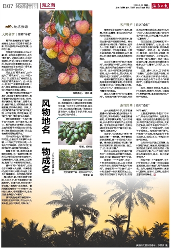 海南有很多知名特产,荔枝、槟榔、芒果、红薯等,都可以找到与之相关的地名。