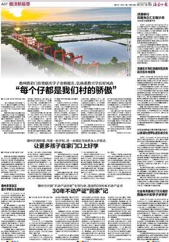 ■ 见习记者 吴心怡 特约记者 刘畅“每个仔都是我们村的骄傲!”8月27日,儋州市东成镇洪山村村委会干部陈建都告诉记者,今年洪山村有15个孩子升学,不论本科专科一律要挂上贺联。