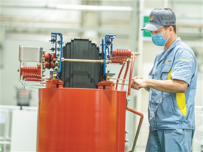 海南金盘智能科技股份有限公司,技术工人在装配车间作业。本报记者 袁琛 摄