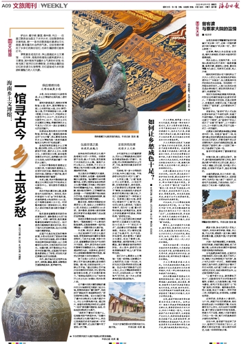 乡土文博馆,携带着一方水土的文化基因,寄托着一隅百姓的乡愁记忆,是乡土图景的真实载体。分布于海南各地的乡土文博馆或许规模不大,或许名气不显,却都尽职尽责地屹立着,展示着琼岛这片土地的故事,成为连接过去和现在的文化与情感纽带。