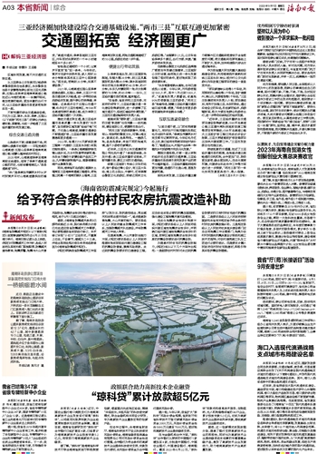 在与金融机构合作方面,“琼科贷”合作银行从原来的中国银行1家增加至4家,分别是中国银行、中国农业银行、中国建设银行、海南银行。截至2023年8月22日,“琼科贷”向软件和信息技术服务、生物医药、无人机制造等领域的99户企业,累计投放贷款5.2亿元,切实为高新技术企业提供低利率贷款,降低高新技术企业融资成本。