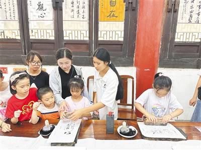 “千载东坡,走读儋洋”游学团体验传统拓印技艺。 主办方供图