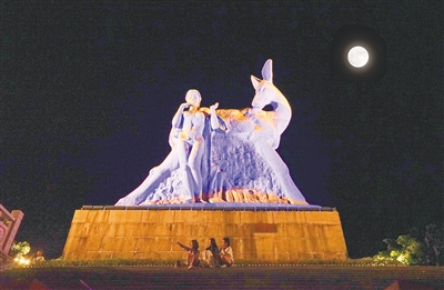 市民游客在三亚鹿回头景区看夜景。海南日报记者 武威 摄